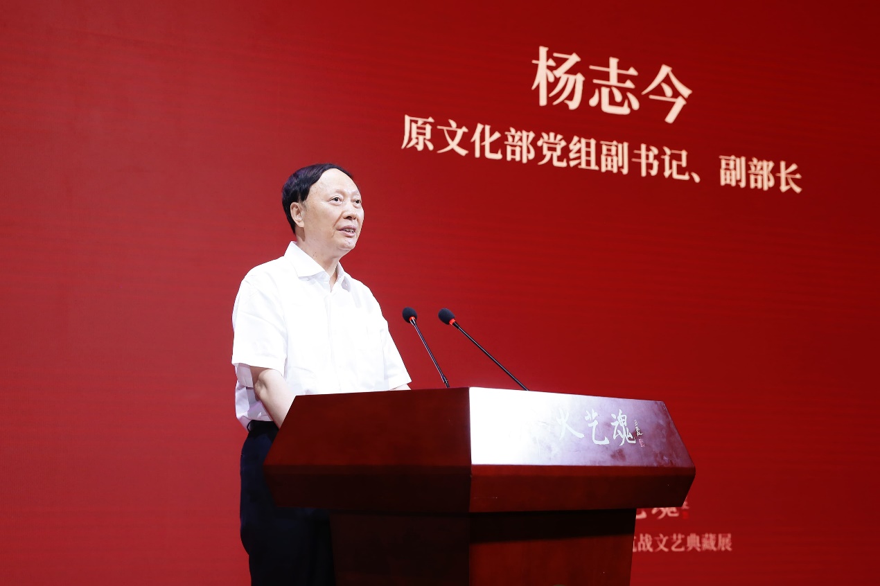为纪念中国人民抗日战争暨世界反法西斯战争胜利80周年,由中国艺术研究院主办、中国艺术研究院艺术与文献馆承办的“烽火艺魂——中国艺术研究院抗战文艺典藏展”于2025年7月16日在中国艺术研究院开幕。原文化部党组副书记、副部长杨志今出席开幕式并宣布展览开幕。
