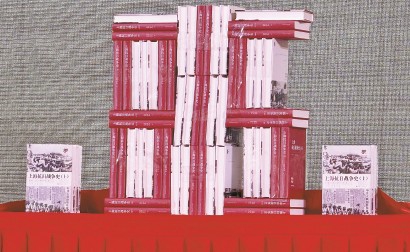 首发式上,《上海抗日战争史》新书被码放成“815”字样,纪念80年前对中华民族意义卓著的胜利。这套150余万字的皇皇巨著集合了上海三代历史学者长达10年的努力。
