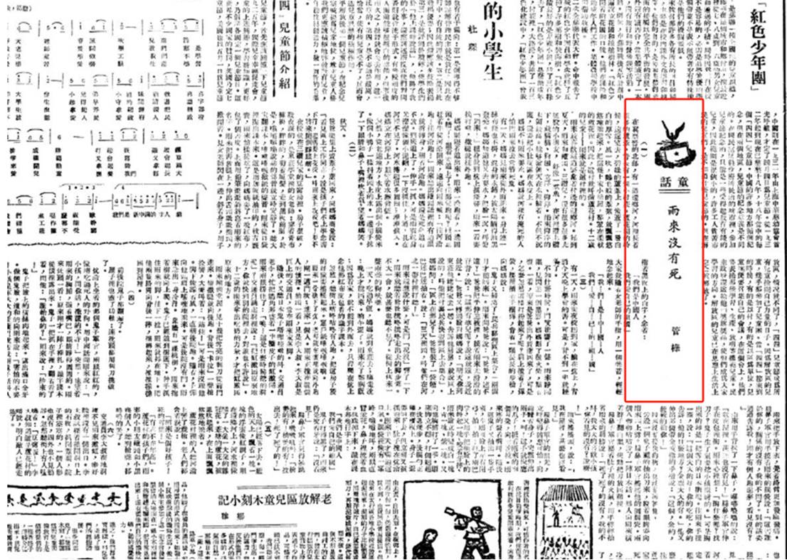 管桦《雨来没有死》,1949年4月4日《人民日报》第4版