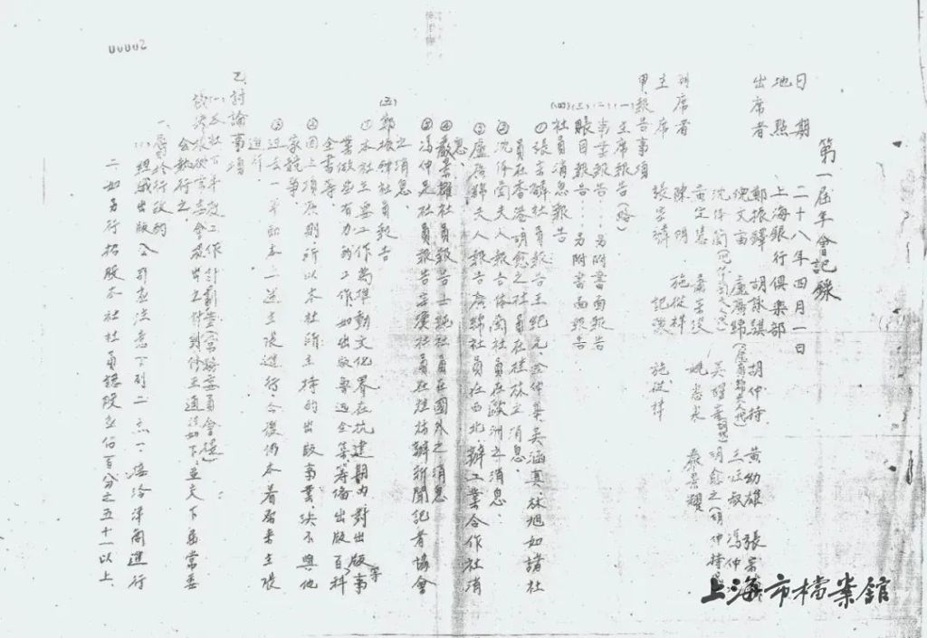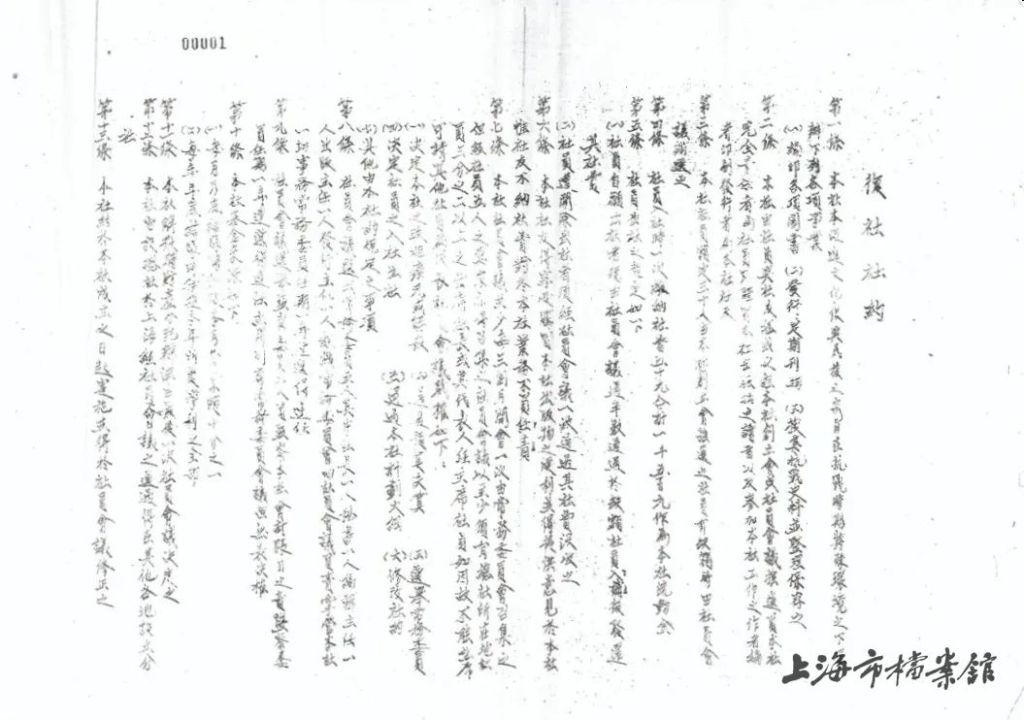 幸运的是,上海市档案馆保存有两件复社的原始档案,可窥一斑。档案一为复社社约,一为复社第一届年会记录(1939年4月1日)。