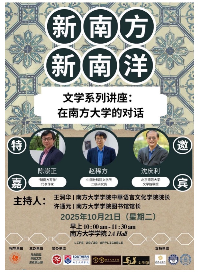 近日,由中国作家协会外联部指导,马来西亚中国文学读者俱乐部主办,马来西亚汉文化中心、南方大学学院与新纪元大学学院共同承办的“新南方、新南洋”文学思潮海外推广系列活动在马来西亚举办,中国作家陈崇正、学者赵稀方和沈庆利赴马与马来西亚文学界人士充分交流,开展了一系列充满思想深度的对话。