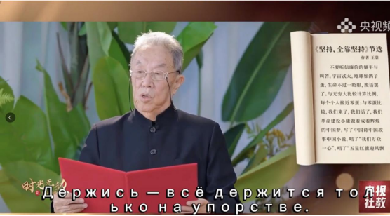 活动现场还特别播放了王蒙先生朗诵其作品选段《坚持,我们全靠坚持!》的视频。视频中,年逾九旬的王蒙先生依旧精神矍铄,用慷慨激昂、中气十足的语调朗诵到:“我们多么幸福,我们多么精彩,我们如日中天,我们继续坚持,我们再坚持奋斗百年千载不停息!”。激昂的文字与真挚的情感感染了在场的年轻读者,现场响起了经久不息的掌声。