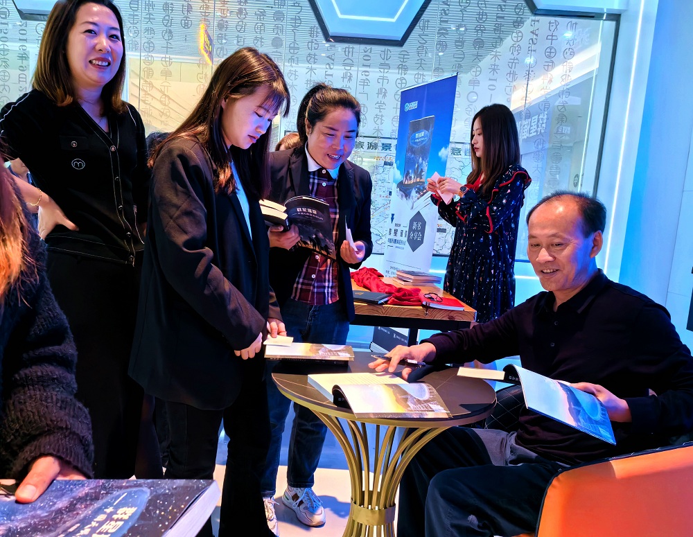 2024年4月13日,贵州科技出版社、中共平塘县委宣传部、平塘县新华书店共同举办《群星璀璨——中国天眼背后的人们》新书发布仪式和分享会,图为现场签名赠书。