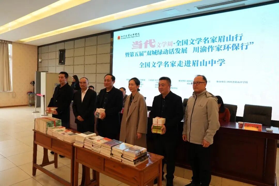 人民文学出版社副总编赵萍、四川省作协副主席侯志明等向学校赠送书籍和《当代》杂志