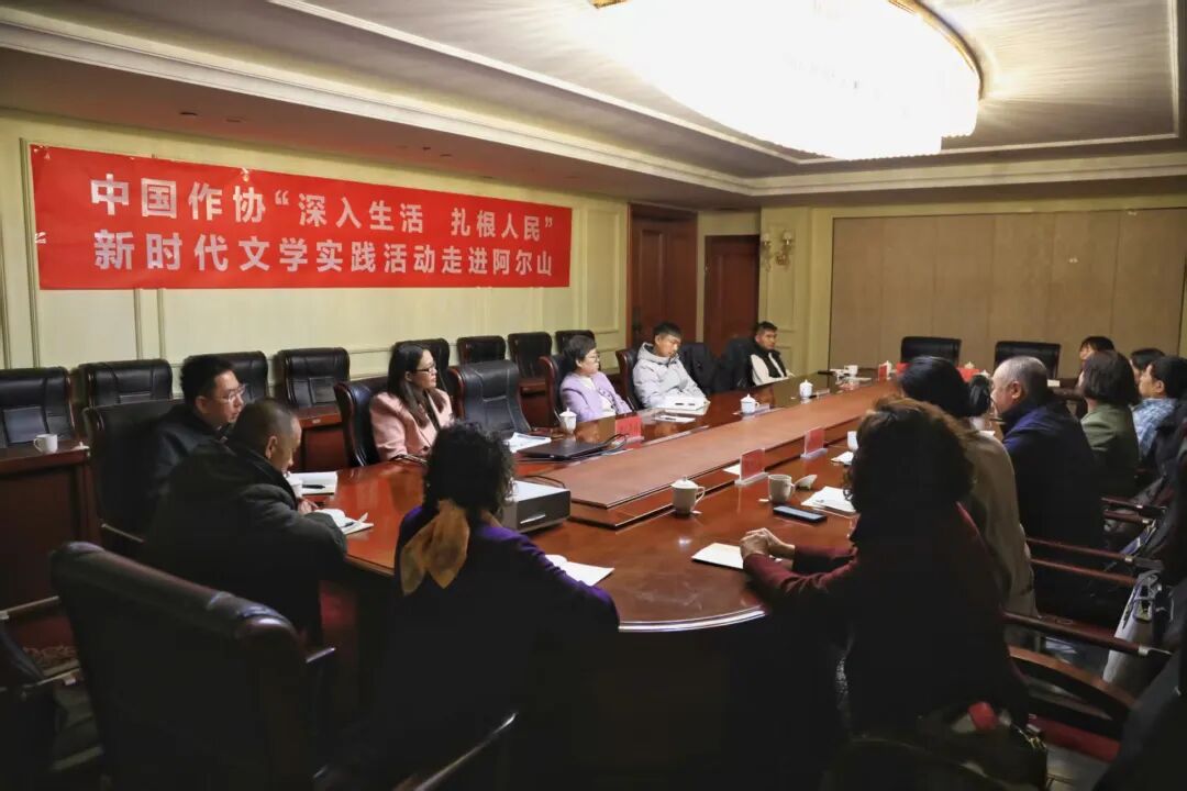 中国作协作家与盟市两级文联及作协的基层作家进行了交流座谈,并举办系列文学讲座。座谈会由兴安盟文联副主席、盟作协主席赛音朝克图主持。