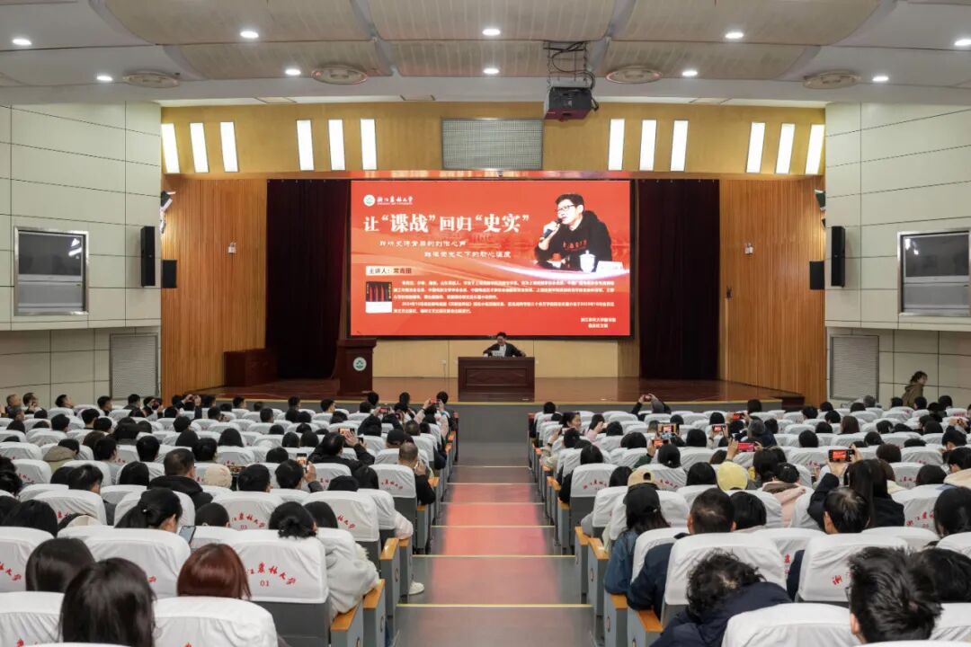 讲座中,常青田简要介绍了自身求学经历与影视改编小说的创作历程,随后便聚焦谍战小说创作展开重点分享。他紧扣“让‘谍战’回归‘史实’”主题,以热播剧《沉默的荣耀》为核心,深入阐释谍战文学的创作初心与坚守。他强调,谍战创作始终秉持“史实为骨、艺术为魂”理念,既要深入考证真实历史、还原时代场景,拒绝脱离史实的凭空虚构,也要聚焦隐蔽战线英雄的精神世界,细腻刻画信仰抉择与内心困境,用有温度的文字赋予历史人物生命力。他表示,谍战故事不是猎奇爽文,而是对历史的致敬与回望,创作核心是传递理想与信仰,让被忽视的红色历史被更多人看见、铭记。此次讲学,也为传播天目山深厚人文积淀、弘扬临安红色文化与吴越文化注入了强劲文学力量。